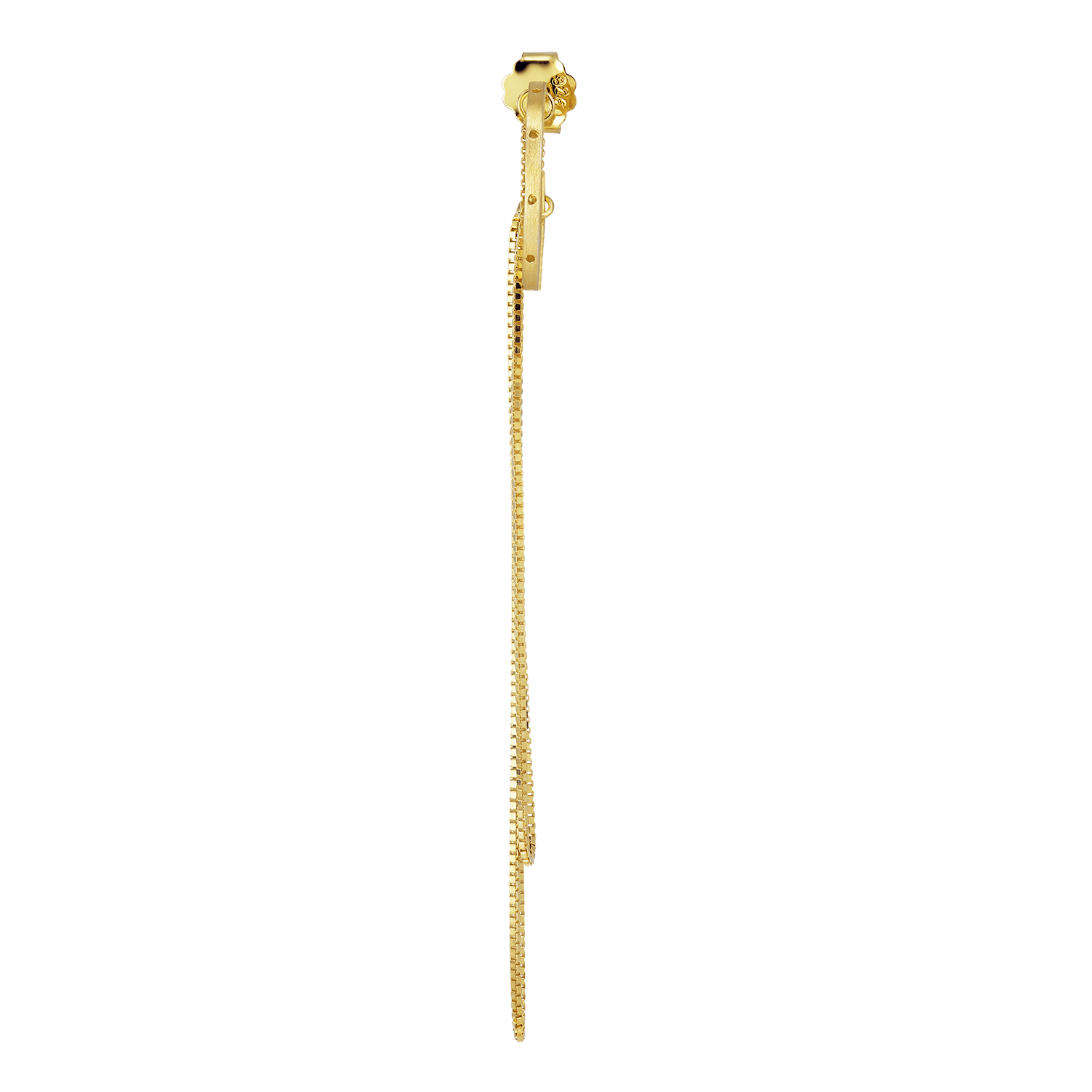 Creolen, med sine draperede kæder og raffinerede gennemborede huller, skaber et åbent rum, der lader lyset passere igennem. Dens lethed gør øreringen ideel til hverdagslooket, samtidig med at den tilføjer et pift til ethvert outfit.